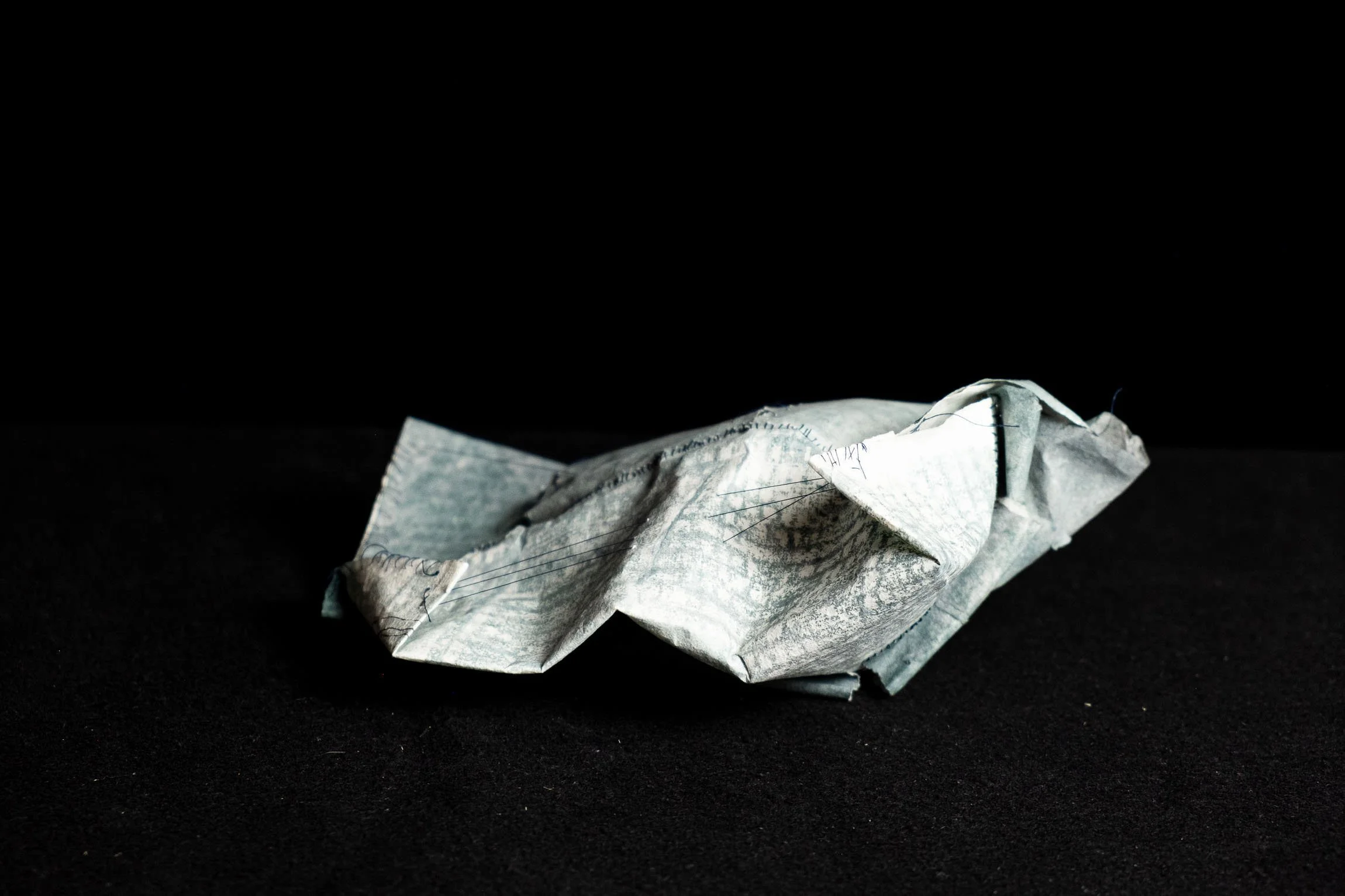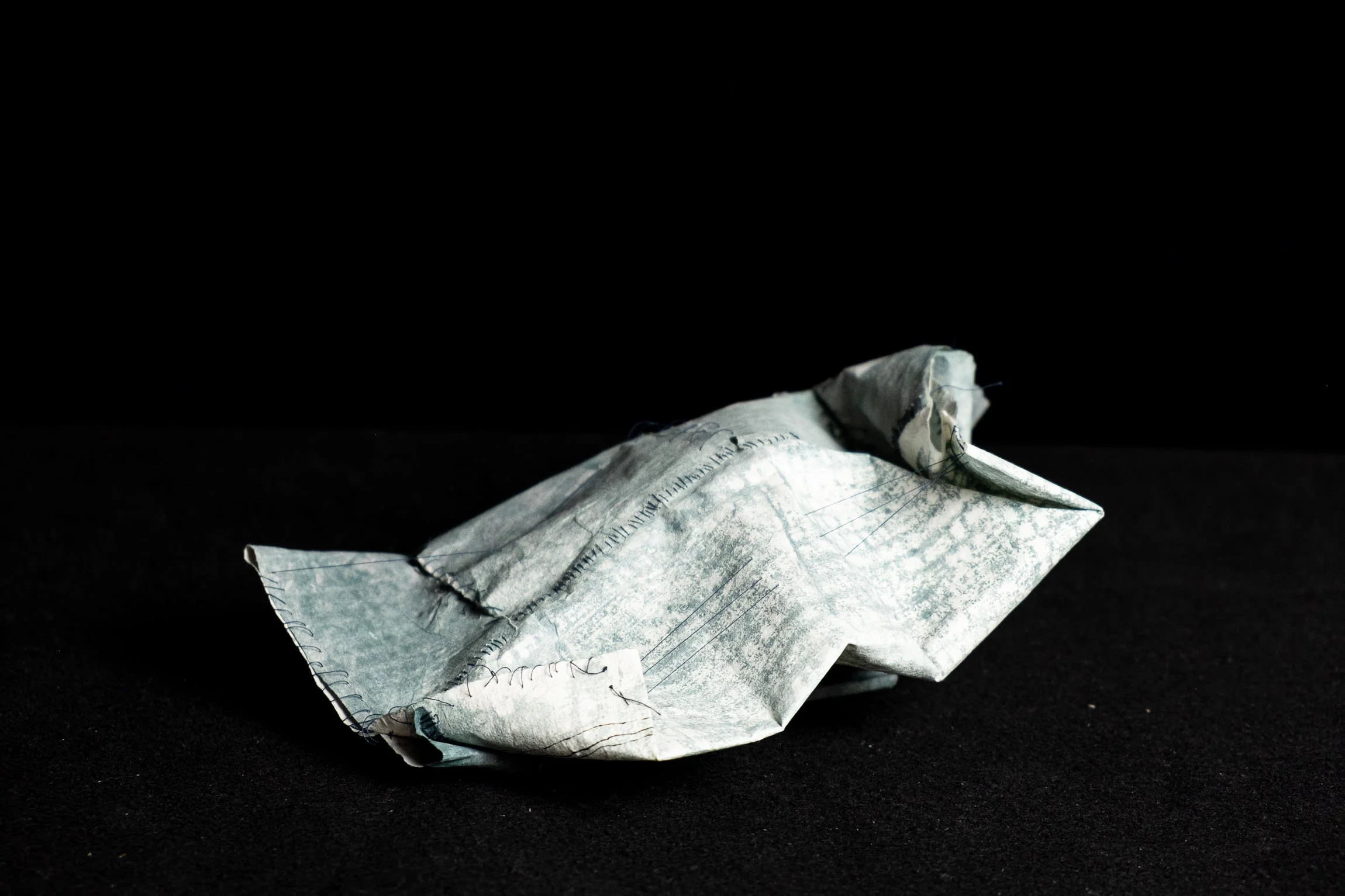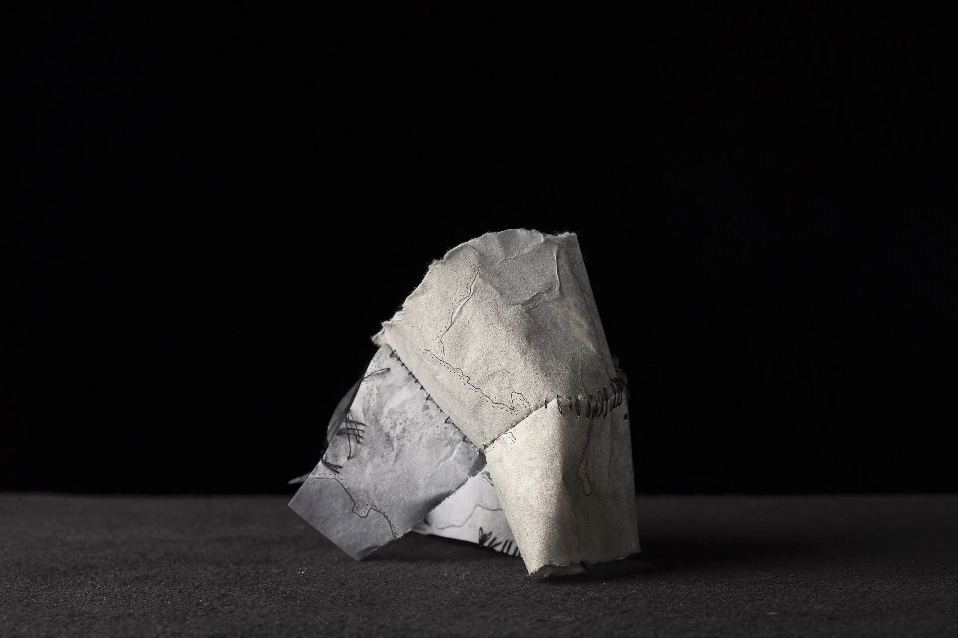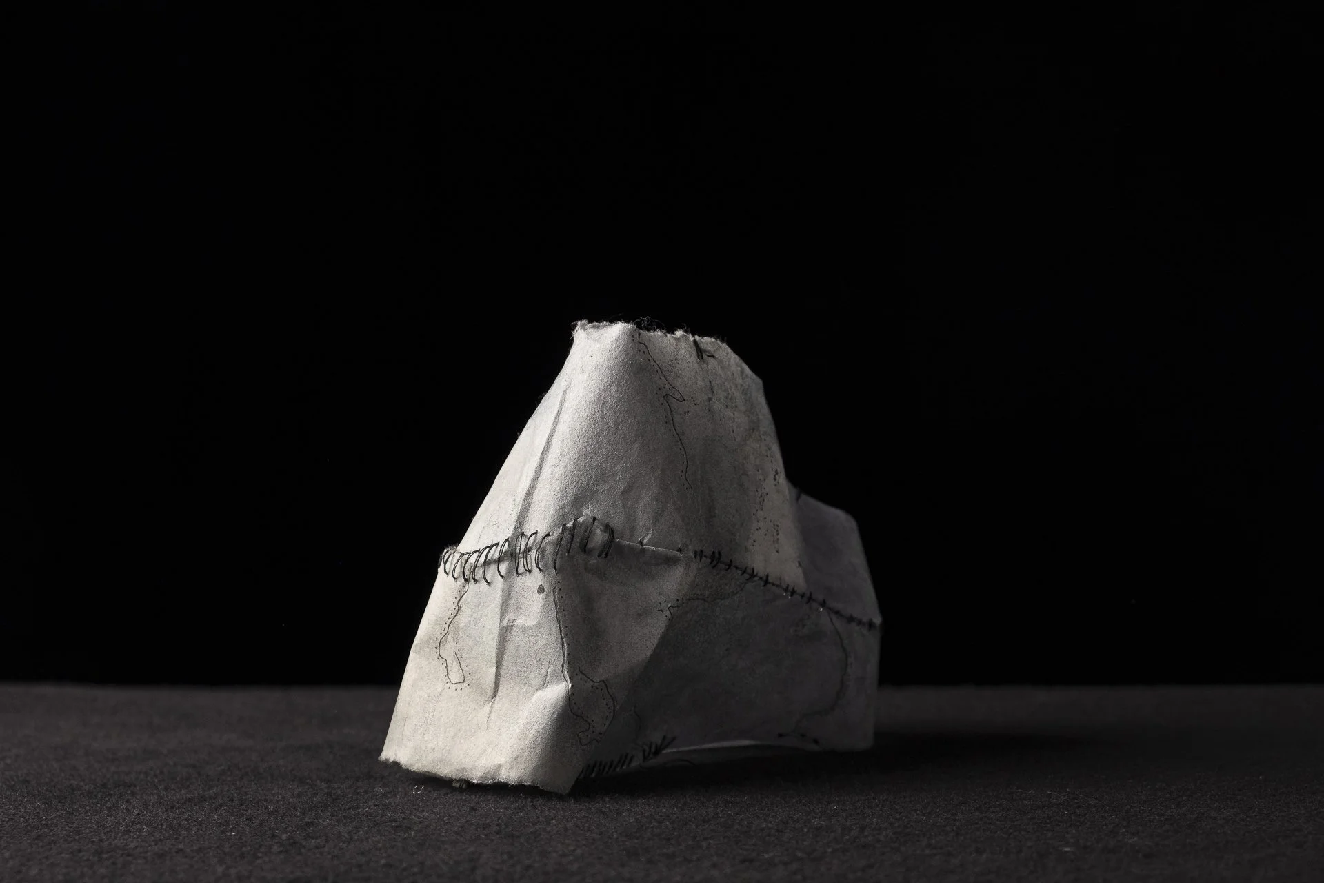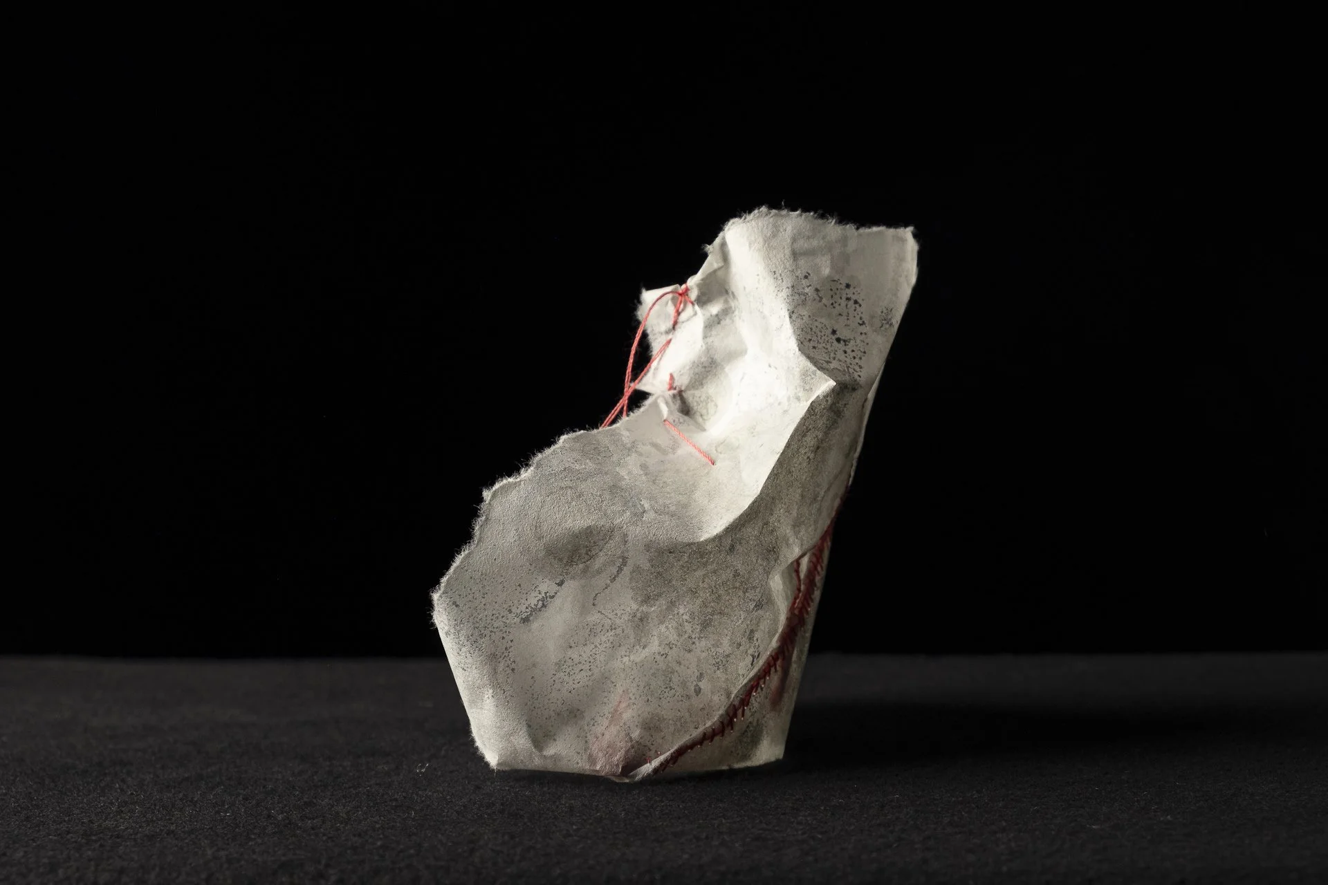 Med ömtåliga papper, tunna linjer, dimmiga färgfält och sköra trådar som ensamma håller ihop former vill jag skapa en gåtfull och förgänglig stämning. En önskan om att bjuda in människor att gå nära och stanna upp i detaljerna, som om verken snart kommer blåsa iväg eller blekna bort.