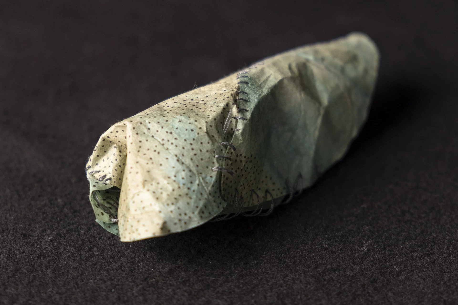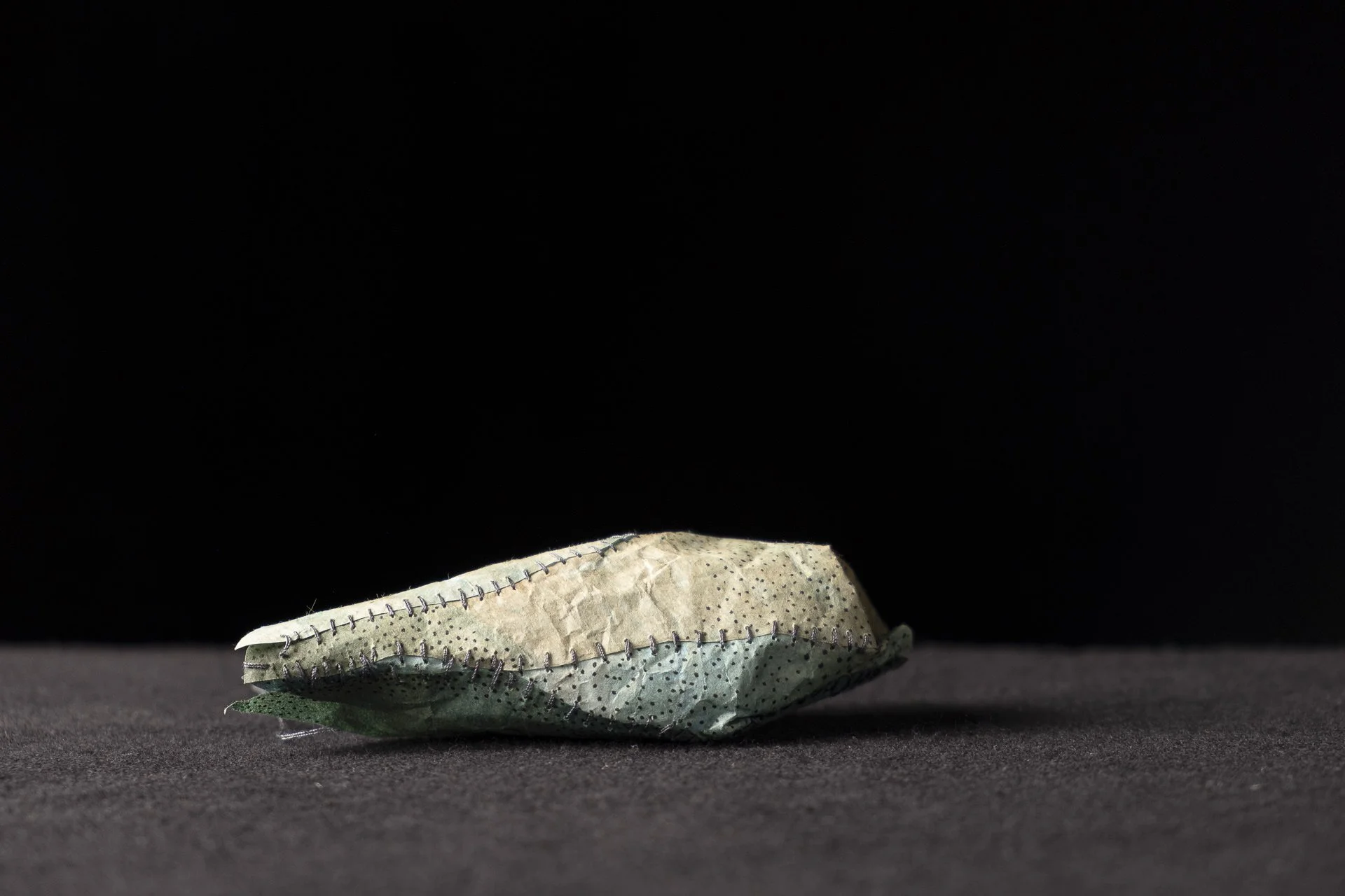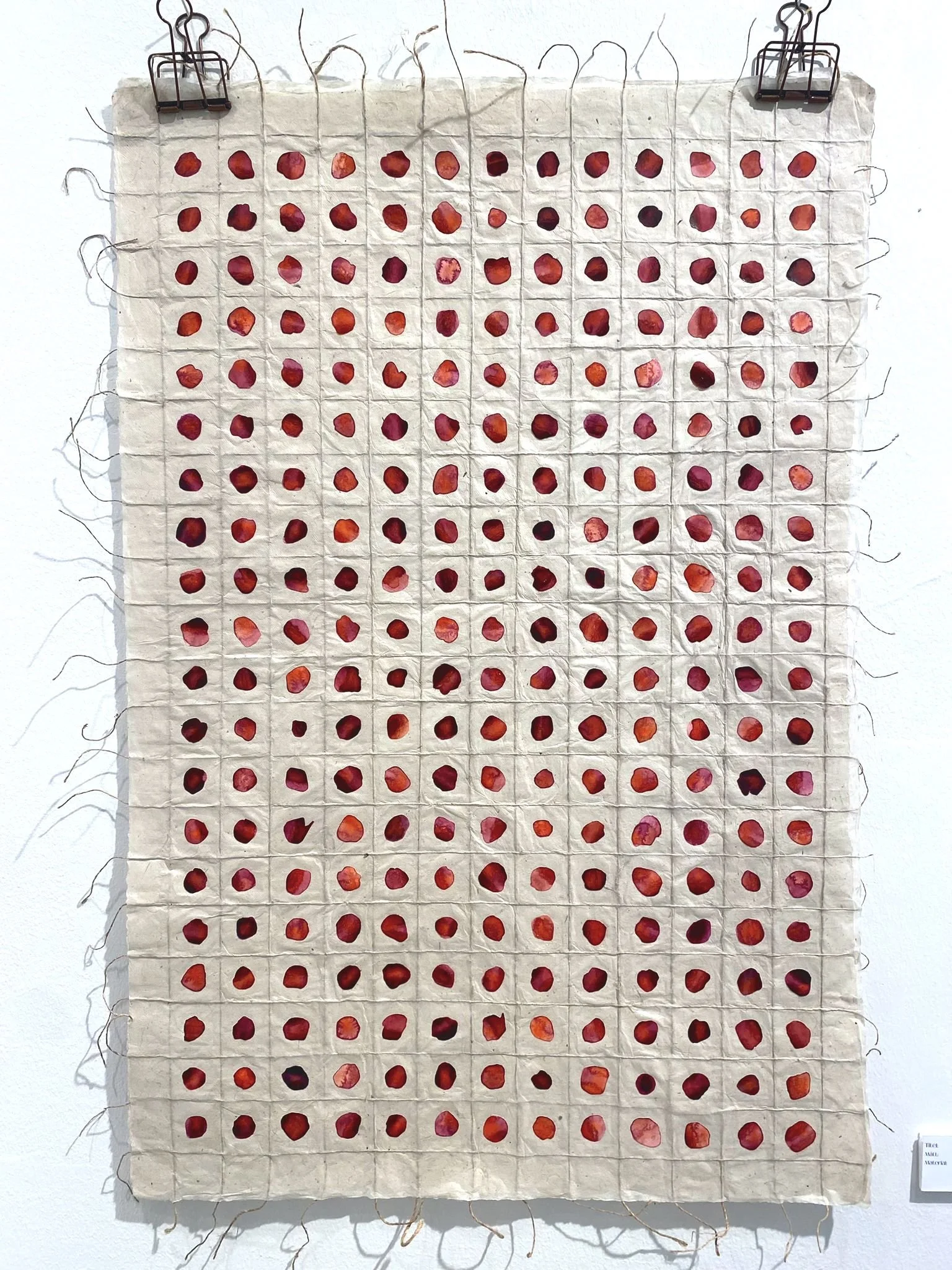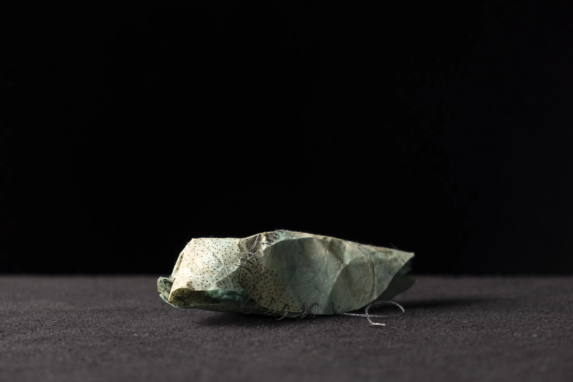 Med ömtåliga papper, tunna linjer, dimmiga färgfält och sköra trådar som ensamma håller ihop former vill jag skapa en gåtfull och förgänglig stämning. En önskan om att bjuda in människor att gå nära och stanna upp i detaljerna, som om verken snart kommer blåsa iväg eller blekna bort.